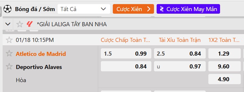 Tỷ lệ kèo Atletico Madrid vs Alaves