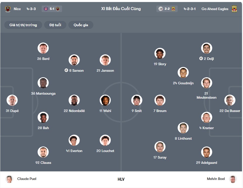 Nice tiếp tục gây thất vọng tại Europa League khi sớm bị loại và ưu tiên Ligue 1, trong khi Go Ahead Eagles vẫn còn động lực cạnh tranh suất đi tiếp, hứa hẹn trận đấu cởi mở, nhiều bàn thắng.