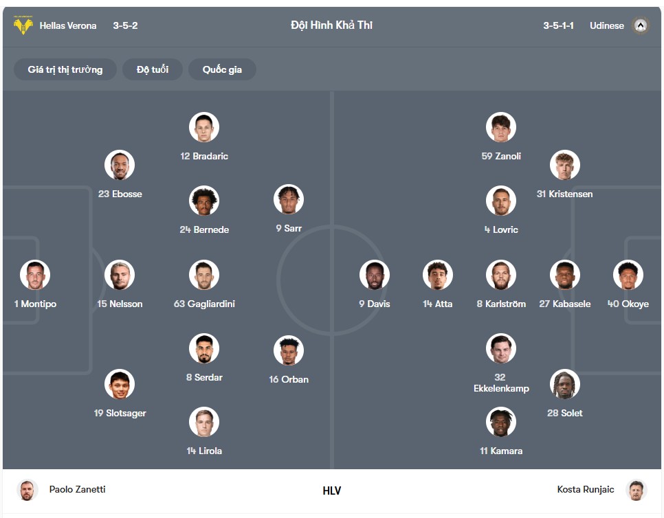 Việc được trở về sân Bentegodi chưa chắc đã mang lại nhiều tín hiệu tích cực cho Verona trong trận đấu này. Thực tế cho thấy họ đã để thua trong cả 3 trận sân nhà gần nhất, và phong độ tại Bentegodi mùa này là vô cùng đáng thất vọng. Sau 11 trận sân nhà tại Serie A, Verona mới chỉ có đúng 1 lần được hưởng niềm vui chiến thắng, chưa kể đến thất bại sớm trước đối thủ truyền kiếp Venezia ở Coppa Italia. Những con số này phản ánh rõ việc lợi thế sân bãi gần như không còn là điểm tựa tinh thần đáng kể với Verona ở thời điểm hiện tại. Dẫu vậy, nếu xét riêng về lịch sử đối đầu gần đây, Verona vẫn có những cơ sở nhất định để nuôi hy vọng. Trong 5 lần gần nhất tiếp đón Udinese trên sân nhà, họ đã giành được 3 chiến thắng, đồng thời giữ sạch lưới trong 5 trên tổng số 6 lần chạm trán gần đây giữa hai đội. Đây là thống kê cho thấy Verona thường chơi khá tốt khi đối đầu Udinese, bất chấp sự chênh lệch về phong độ ở thời điểm hiện tại.