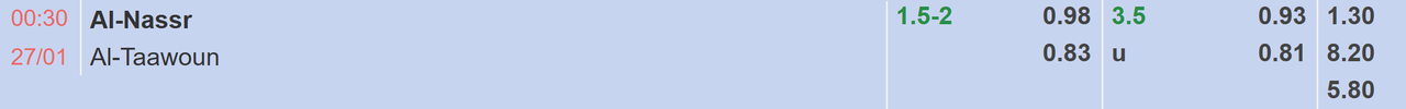 Thật không may khi Al Taawon phải đụng độ Al Nassr Riyadh vào thời điểm họ không có được trạng thái tốt nhất. Vì đoàn quân của HLV Pericles Chamusca chắc hẳn chưa thể quên được thất bại nặng nề trong trận lượt đi với cách biệt 5 bàn không gỡ. Rõ ràng với 3/5 trận không thắng gần đây của Al Taawon, cơ hội để họ tạo ra bất ngờ trên sân khách không nhiều dù phong độ của thầy trò Pericles Chamusca rất ấn tượng dù có phải thi đấu xa nhà. Tỷ lệ chấp được nhà cái bố trí lên tới 1.75 FT nghiêng về phía Al Nassr Riyadh nhưng do đã thắng đậm vào cuộc gặp gỡ trước đó, chọn Ronaldo và các đồng đội mới là quyết định đúng đắn.