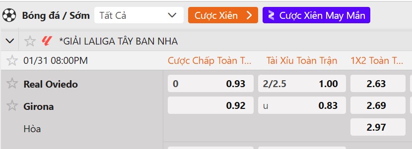 Tỷ lệ kèo Real Oviedo vs Girona