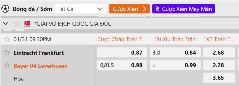 Tỷ lệ kèo Frankfurt vs Leverkusen