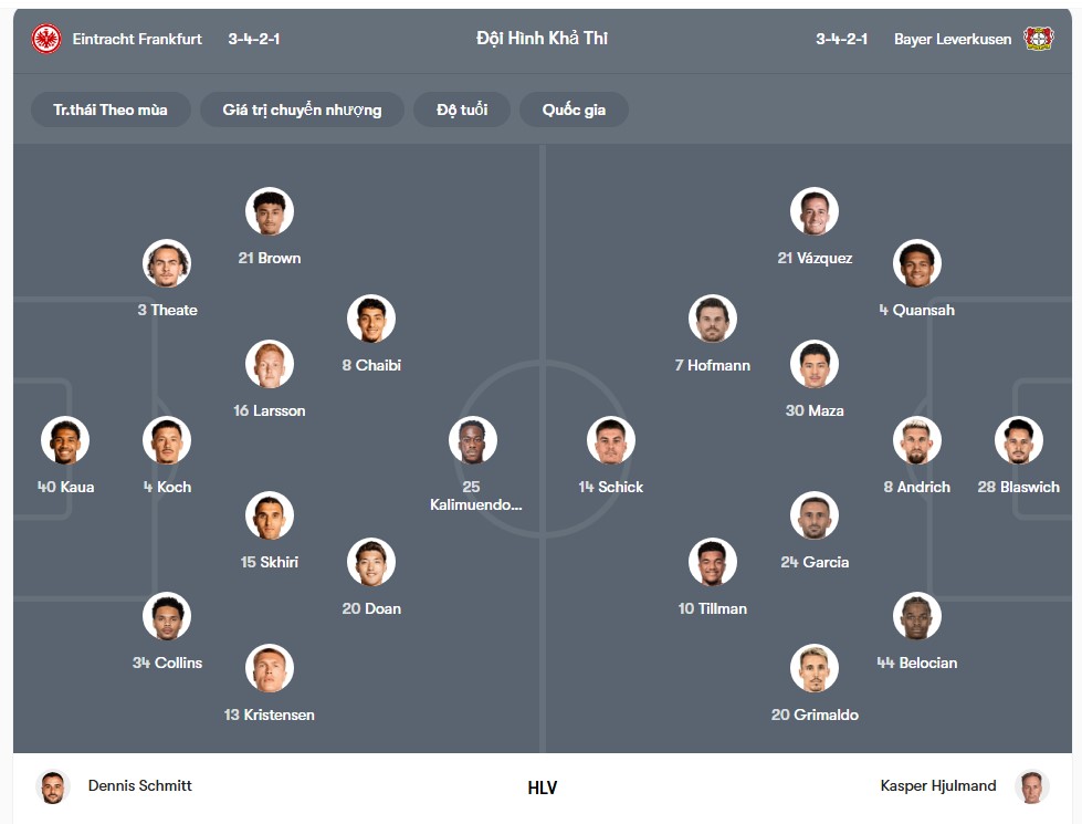 Cuộc đối đầu giữa Frankfurt và Bayer Leverkusen trên sân Deutsche Bank Park được xem là trận cầu tâm điểm của vòng 20 Bundesliga. Với phong độ hiện tại, lịch sử đối đầu cùng lối chơi cởi mở của cả hai đội, người hâm mộ hoàn toàn có thể kỳ vọng vào một màn so tài hấp dẫn và giàu cảm xúc. Frankfurt bước vào trận đấu này sau thất bại 1-3 trước Hoffenheim, một trận đấu mà họ chỉ kiểm soát bóng 47% nhưng vẫn tạo ra được một số cơ hội đáng chú ý. Dẫu vậy, sự thiếu hiệu quả trong khâu dứt điểm cùng những sai lầm nơi hàng phòng ngự đã khiến Frankfurt phải trả giá. Đáng chú ý, 5 trong 6 trận gần nhất của Frankfurt khép lại với từ 3 bàn thắng trở lên, phản ánh rõ nét lối chơi sẵn sàng tấn công nhưng cũng dễ bị tổn thương khi mất bóng.