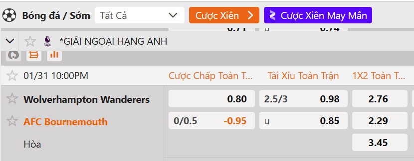 Trong khuôn khổ vòng 24 Ngoại Hạng Anh, Wolves sẽ có lợi thế được thi đấu trên sân nhà Molineux để tiếp đón Bournemouth, một đối thủ đang thể hiện phong độ khá phập phù mỗi khi phải thi đấu xa nhà. Với tình thế hiện tại, đội bóng áo vàng đen đặt mục tiêu giành thêm điểm số nhằm cải thiện tinh thần và duy trì hy vọng mong manh cho chặng đường còn lại của mùa giải.
