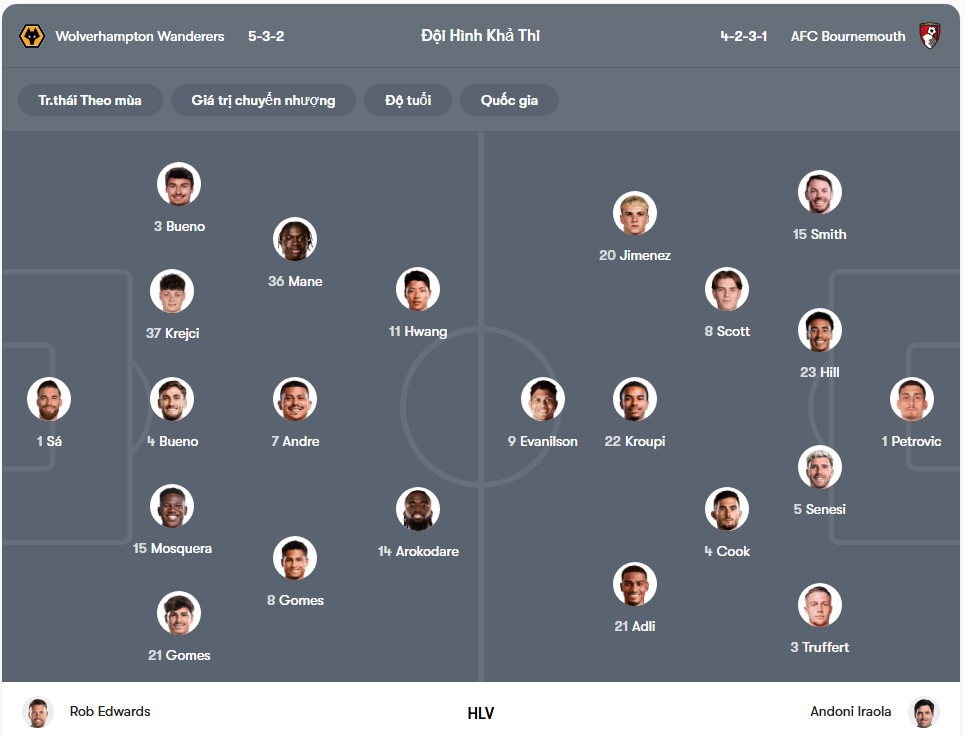 Dẫu vậy, Wolves vẫn có những điểm sáng hiếm hoi trong thời gian gần đây, đặc biệt là nơi hàng phòng ngự khi được thi đấu trên sân nhà. Cụ thể, họ đã giữ sạch lưới trong hai trận sân nhà gần nhất, lần lượt là trận hòa không bàn thắng trước Newcastle và chiến thắng 3-0 trước West Ham. Đây là sự cải thiện đáng kể nếu biết rằng trước đó Wolves từng trải qua chuỗi 11 trận liên tiếp để thủng lưới tại Molineux trong giai đoạn từ tháng 5 đến tháng 12. Tuy nhiên, sân nhà Molineux lại không mang đến nhiều ký ức tích cực cho Wolves mỗi khi đối đầu Bournemouth. Trong khuôn khổ Premier League, “Bầy Sói” đã để thua cả 3 lần gần nhất tiếp đón đối thủ này, trong đó có thất bại 2-4 diễn ra vào tháng 11/2024. Điều này cho thấy Bournemouth thường biết cách khai thác những điểm yếu của Wolves ngay tại sào huyệt của họ.