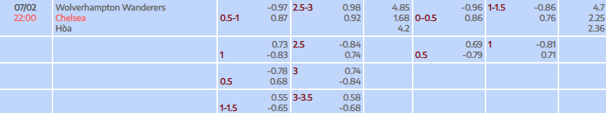 Tỷ lệ kèo Premier League Wolves vs Chelsea