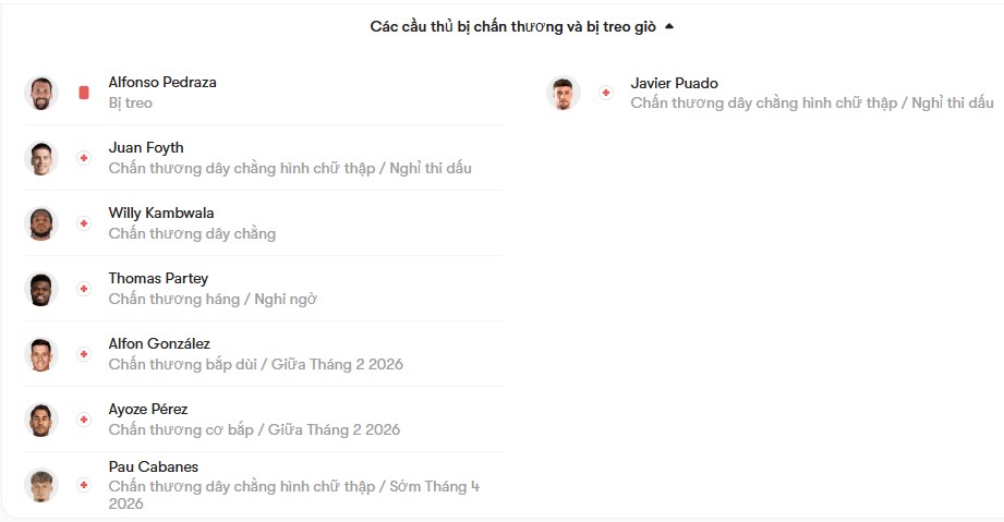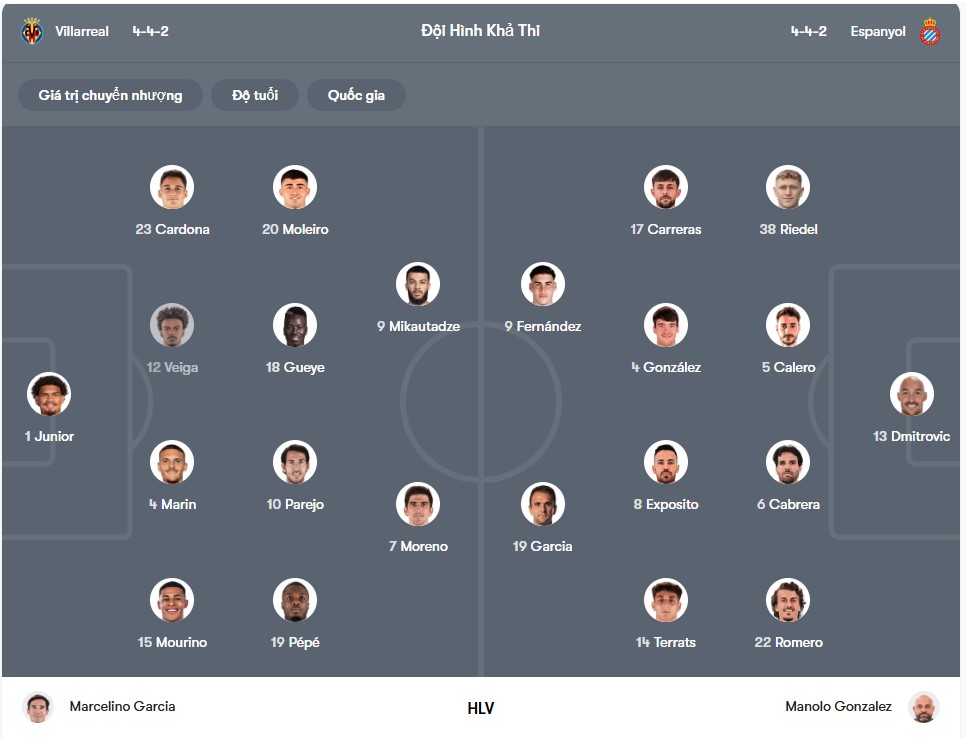 Lịch sử đối đầu đang hoàn toàn ủng hộ Villarreal. Trong 7 lần gần nhất chạm trán Espanyol tại La Liga, đội chủ sân La Cerámica đều bất bại, thậm chí toàn thắng trong các cuộc đối đầu kể từ năm 2022. Đáng chú ý, ở lượt đi mùa giải này, Villarreal đã giành chiến thắng 2-0 ngay trên sân của Espanyol. Trước đó, ở mùa giải 2024/25, “Tàu ngầm vàng” cũng đánh bại đối thủ với tỷ số tối thiểu 1-0. Rõ ràng, Espanyol đang gặp rất nhiều khó khăn mỗi khi phải đối đầu với Villarreal trong những năm gần đây. Về mặt lực lượng, Villarreal sẽ không có sự phục vụ của một số trụ cột do chấn thương như Logan Costa, Pau Cabanes, Willy Kambwala hay Juan Foyth, trong khi Alfonso Pedraza bị treo giò. Ngoài ra, Ayoze Perez, Alfon Gonzalez và Thomas Partey vẫn cần vượt qua bài kiểm tra thể lực trước giờ bóng lăn. Dù vậy, sự trở lại đúng lúc của Gerard Moreno trên hàng công cùng kinh nghiệm của Dani Parejo nơi tuyến giữa vẫn là điểm tựa quan trọng cho đội chủ nhà.