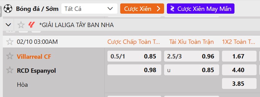 Xét tổng thể, Villarreal rõ ràng đang nắm nhiều lợi thế hơn so với Espanyol. Dù phong độ gần đây chưa thực sự thuyết phục, nhưng lợi thế được ra sân trên mặt cỏ quen thuộc của mình, chất lượng đội hình nhỉnh hơn cùng lịch sử đối đầu áp đảo là những yếu tố giúp “Tàu ngầm vàng” được đánh giá cao hơn. Trong bối cảnh Espanyol vẫn đang loay hoay tìm lại sự ổn định, đặc biệt là ở hàng thủ, khả năng đội khách tạo nên bất ngờ là không quá lớn. Thống kê cũng cho thấy trong 5 trận gần nhất của Villarreal đã có tổng cộng 14 bàn thắng được ghi, trung bình 2,8 bàn mỗi trận. Con số tương tự cũng xuất hiện ở 5 trận gần nhất của Espanyol. Tuy nhiên, trong 5 lần đối đầu gần nhất giữa hai đội, tổng số bàn thắng chỉ dừng lại ở mức 13, tức trung bình 2,6 bàn mỗi trận. Điều này cho thấy các cuộc chạm trán giữa Villarreal và Espanyol thường không quá bùng nổ, nhất là khi Villarreal luôn biết cách kiểm soát thế trận và chơi khá chặt chẽ trước đối thủ này. Với những phân tích kể trên, Villarreal nhiều khả năng sẽ là đội kiểm soát thế trận và tạo ra nhiều cơ hội nguy hiểm hơn. Espanyol có thể sẽ lựa chọn lối chơi phòng ngự phản công, nhưng với hàng thủ đang thiếu chắc chắn, họ khó lòng đứng vững trước sức ép liên tục từ đội chủ nhà. Nếu tận dụng tốt các cơ hội và hạn chế sai lầm nơi hàng phòng ngự, Villarreal hoàn toàn có thể giành trọn 3 điểm mà không cần một thế trận quá cởi mở. Chọn cửa trên của Villarreal -3/4 trái và cửa xỉu 2 3/4 trái cho kèo châu Á.