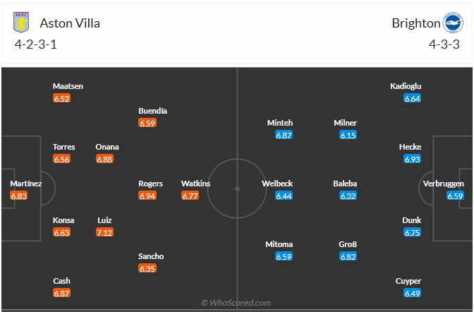 Aston Villa tiếp tục có màn đối đầu với đối thủ có lối chơi khó chịu là Bournemouth ở vòng đấu gần nhất trong bối cảnh phải hành quân xa nhà và sau cùng thì họ cũng chỉ có được kết quả hoà 1-1. Thậm chí là nếu không có sự xuất sắc của thủ thành Emiliano Martinez, Aston Villa có lẽ đã trắng tay rời Vitality Stadium. Đối đầu với Brighton trận này mang tới nhiều khó khăn cho Aston Villa, nhưng nếu chơi đúng sức và tận dụng được lợi thế sân nhà thì đoàn quân của HLV Unai Emery hoàn toàn có thể sở hữu cho mình 3 điểm trọn vẹn.