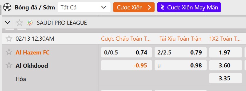Tỷ lệ kèo Al Hazem vs Al-Akhdoud