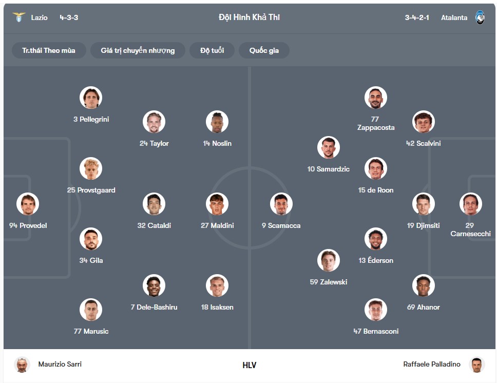 Dưới sự dẫn dắt của HLV Raffaele Palladino, Atalanta dần tìm lại hình ảnh của một đội bóng khó chịu và có tổ chức tốt tại Serie A. Thực tế, cơ hội tiến sâu của họ ở Champions League là không cao, ngay cả khi vượt qua Dortmund ở vòng play-off, bởi phía trước có thể là những đối thủ nặng ký như Arsenal hoặc Bayern Munich tại vòng 1/8. Vì vậy, mục tiêu thực tế hơn với đội bóng Bergamo là dồn phần lớn nguồn lực cho đấu trường quốc nội. Trong khi đó, Lazio đang trải qua một mùa giải bị đánh giá là khá nhạt nhòa. Lực lượng hiện tại không thực sự phù hợp để triển khai triết lý bóng đá đặc trưng của HLV Maurizio Sarri. Ở tuổi 67, chiến lược gia này chấp nhận thực tế và làm việc trong điều kiện nhân sự hạn chế. Ban lãnh đạo Lazio cũng không tạo thêm áp lực thành tích khi mời ông trở lại dẫn dắt đội bóng lần thứ hai. Nhìn chung, với tình hình hiện tại, Lazio có thể phải chấp nhận vị trí ở giữa bảng xếp hạng như một kết quả hợp lý.