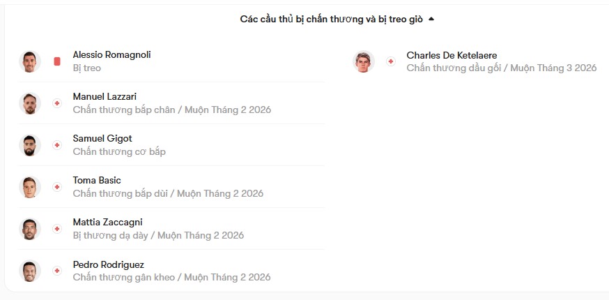 Trái ngược với sự chệch choạc của Lazio, Atalanta lại đang duy trì phong độ rất ấn tượng. Sau trận hòa đầy nỗ lực trên sân Como dù phải thi đấu thiếu người hơn 80 phút, đại diện thành Bergamo tiếp tục tạo dấu ấn khi loại Juventus khỏi Coppa Italia. Tiếp đó, họ đánh bại Cremonese tại Serie A. Trong trận đấu này, Atalanta ghi hai bàn chỉ trong 30 phút đầu, nhanh chóng kiểm soát cục diện trước khi để đối thủ có bàn danh dự vào cuối trận. Hiện tại, Atalanta đang xếp trên Lazio một bậc và hơn 6 điểm trên bảng xếp hạng. Đáng chú ý, họ vẫn bất bại tại Serie A trong năm dương lịch 2026, với 5 chiến thắng và 2 trận hòa. Thành tích này giúp đội bóng áo xanh đen trở lại mạnh mẽ trong cuộc đua giành suất dự cúp châu Âu mùa sau.