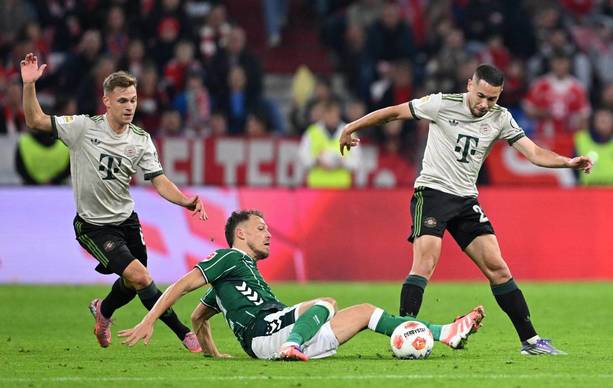Bayern Munich: Neuer; Stanisic, Tah, Kim, Davies; Kimmich, Goretzka; Karl, Musiala, Diaz; Kane