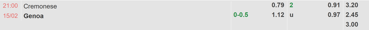Mặc dù thầy trò Daniele De Rossi không giấu được sự kém cỏi và chẳng khác nào “kẻ 8 lạng người nửa cân” với Cremonese nhưng đội khách có ít lần khiến giới đầu tư thua lỗ hơn hẳn. Chưa hết, 2 trận thua liên tiếp của Genoa đều là do gặp gỡ đối thủ quá tầm. Cả Lazio và Napoli đều không cho đoàn quân của HLV Daniele De Rossi bất cứ cơ hội nào để giành điểm. Kịch bản thất thủ 2-3 được tái hiện trong cả 2 vòng đấu gần nhất và đưa Genoa vào tình thế bế tắc.