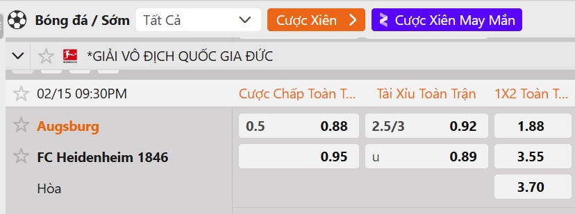 Tỷ lệ kèo Augsburg vs Heidenheim