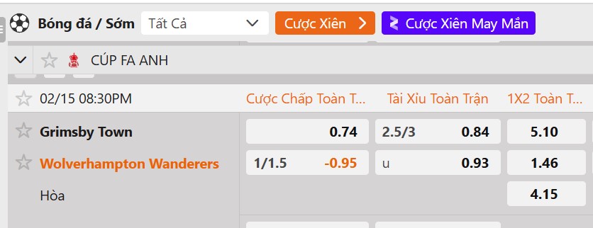 Tỷ lệ kèo Grimsby Town vs Wolves