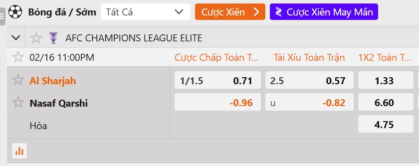 Tỷ lệ kèo Al-Sharjah vs Nasaf
