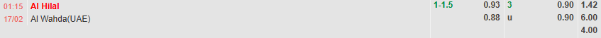 Tỷ lệ kèo AFC Champions League Al Hilal vs Al Wahda