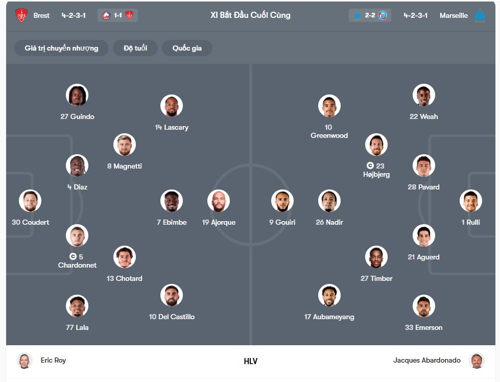 Ý kiến chuyên gia keo nha cai: Trong ba trận đấu diễn ra trong tháng Hai, Brest nhìn chung thể hiện tín hiệu tích cực khi giành được một chiến thắng cùng hai trận hòa, cho thấy đội bóng này phần nào đi đúng hướng trong việc cải thiện phong độ. Dẫu vậy, ở vòng đấu gần nhất họ đã bỏ lỡ cơ hội có được chiến thắng thứ hai trong năm 2026 khi chỉ giành được kết quả hòa 1-1 trên sân của Lille. Bước vào vòng 23 của Ligue 1, thầy trò huấn luyện viên Eric Roy sẽ trở về sân nhà để tiếp đón Marseille. Đánh giá tổng thể trước trận đấu này vẫn cho thấy ưu thế đôi chút thuộc về Marseille, nhưng Brest chắc chắn không phải là đối thủ dễ bị khuất phục khi được chơi tại tổ ấm của mình.