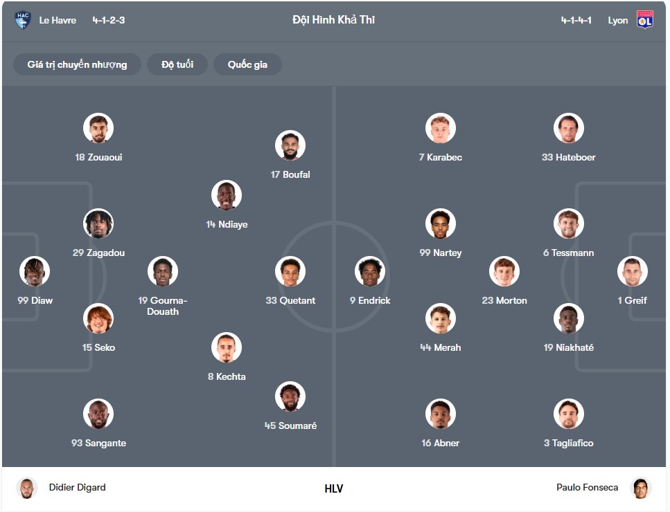 Phía Lyon cũng gặp một số vấn đề về nhân sự. Afonso Moreira và Pavel Sulc bị căng cơ gân kheo, Malick Fofana gặp chấn thương mắt cá chân, Ainsley Maitland-Niles bị đau cơ khép, Ruben Kluivert dính chấn thương cơ. Ngoài ra, Ernest Nuamah phải nghỉ thi đấu dài hạn do rách dây chằng chéo đầu gối, trong khi Clinton Mata bị treo giò. Xét về phong độ ghi bàn, Le Havre đã không thể ghi bàn trong ba trận gần nhất. Dù hàng thủ của Lyon không còn chắc chắn như trước, họ vẫn đủ khả năng kiểm soát hàng công đang gặp nhiều khó khăn của đội chủ nhà và có thể giữ sạch lưới. Ngoài ra, Le Havre cũng không ghi được bàn vào lưới các đội thuộc top 4 trong phần lớn các trận đối đầu mùa này. Vì vậy, khi gặp một Lyon đang rất cần điểm, đội chủ nhà nhiều khả năng sẽ tiếp tục gặp khó khăn trong việc tìm đường vào khung thành đối phương.