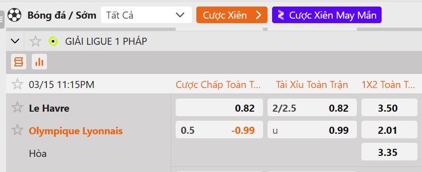 Tỷ lệ kèo Le Havre vs Lyon