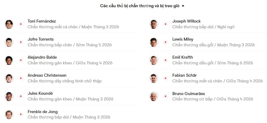 Huấn luyện viên Hansi Flick cũng đang cân nhắc việc trao cơ hội đá chính cho Marcus Rashford, người từng lập cú đúp vào lưới Newcastle trước đó. Tuy nhiên, ông sẽ phải đau đầu trong việc lựa chọn nhân sự bên hành lang trái sau khi Raphinha vừa lập hat-trick ở trận gặp Sevilla. Bên phía Newcastle, một loạt cầu thủ như Bruno Guimaraes, Lewis Miley, Fabian Schar và Emil Krafth sẽ vắng mặt vì chấn thương, trong khi Sandro Tonali vẫn cần được kiểm tra thể trạng. Sự trở lại của Anthony Gordon được kỳ vọng sẽ giúp hàng công đội khách trở nên nguy hiểm hơn. Ở trận lượt đi, hai đội đã tạo ra một thế trận cởi mở với nhiều cơ hội chia đều cho cả hai phía, nhưng số bàn thắng lại khá hạn chế và đều đến từ những sai lầm cá nhân. Điều đó cho thấy, ở trận lượt về, sai lầm sẽ phải được hạn chế tối đa, bởi bất kỳ sơ suất nào cũng có thể khiến một đội phải trả giá bằng tấm vé bị loại.