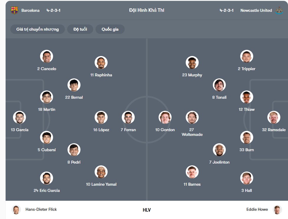 Tỷ lệ kèo Barcelona vs Newcastle