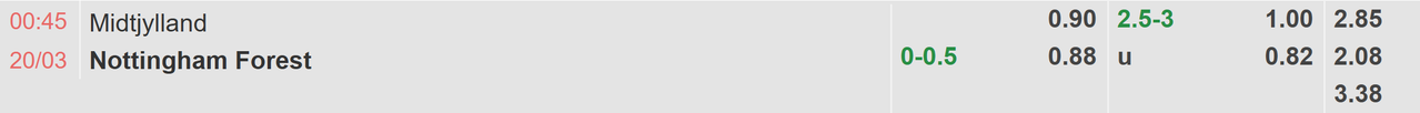 Hướng đối diện, Midtjylland vẫn là câu lạc bộ top đầu của bóng đá Đan Mạch nên việc họ gục ngã hiếm khi xảy ra. Dẫu vậy, tin vui vừa mới đến dành cho các cầu thủ Nottingham vì thầy trò Mike Tullberg vừa mới nhận thất bại 0-1 trong màn trình diễn gần nhất. Kết quả 0-1 trước Nordsjaelland tạm thời chấm dứt mạch 7 trận bất bại của các cầu thủ Midtjylland và mở ra cơ hội để đại diện xứ sương mù phục thù thành công.