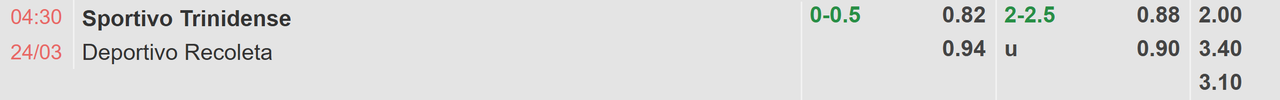 Nhờ lợi thế sân bãi, Trinidense được đánh giá nhỉnh hơn Recoleta đôi chút ở vòng 12, thế nhưng tỷ lệ 0-0.5 FT lại trở thành bất lợi của đội chủ nhà. Nên nhớ, 2 lần gặp nhau gần nhất của hai câu lạc bộ đều không có bất cứ chiến thắng nào gọi tên đoàn quân của HLV Jose Arrua. Trong bối cảnh chuỗi chỉ hòa và thua kéo dài 7 trận liên tiếp rồi không có dấu hiệu dừng lại của Trinidese càng dễ đẩy những ủng hộ xuống vực thẳm. Đối với những trận đấu mà cầu thủ đôi bên đều chơi bóng sa sút và tỷ lệ đối đầu không nghiêng quá nhiều về bất cứ đội nào, cửa dưới vẫn là lựa chọn an toàn hơn cả. Trường hợp này, Recoleta mang tỷ lệ cao giúp người chơi thu về lợi nhuận trên sàn giao dịch châu Á. Vì du thi đấu kém cỏi, đội khách cũng chỉ có 4/11 trận ra về trắng tay ở mùa giải 2026.