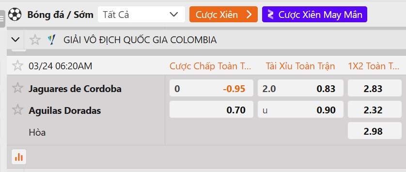 Tỷ lệ kèo Jaguares vs Rionegro Aguilas