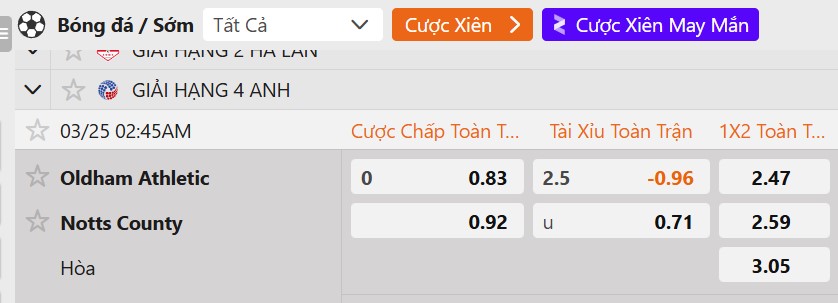 Tổng hợp lại, dù Notts County được đánh giá cao hơn về vị trí trên bảng xếp hạng và mục tiêu thăng hạng, nhưng phong độ ổn định của Oldham cùng với lợi thế sân nhà và thành tích đối đầu vượt trội khiến họ trở thành đội có nhiều cơ hội giành chiến thắng hơn trong trận đấu này. Chọn cửa của Oldham với mức kèo đồng banh và cửa tài 2 1/2 trái cho kèo châu Á.