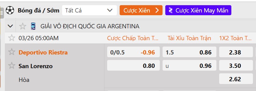 Tỷ lệ kèo Deportivo Riestra vs San Lorenzo