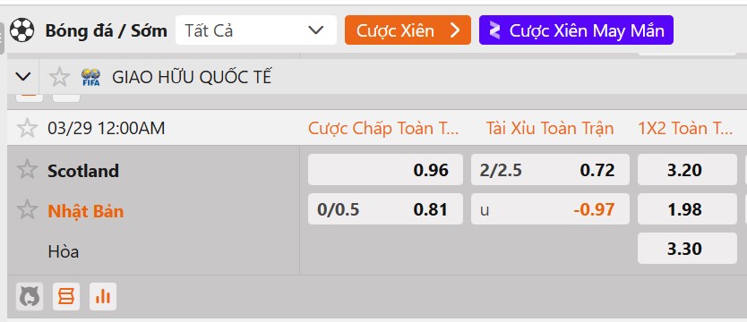 Tỷ lệ kèo Scotland vs Nhật Bản