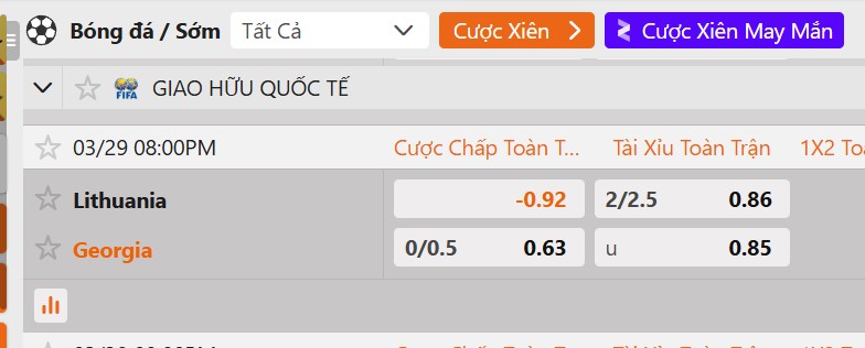 Tỷ lệ kèo Lithuania vs Georgia