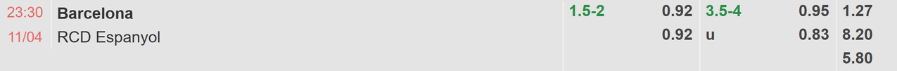 Sức phản kháng của Espanyol gần bằng không vì chính câu lạc bộ này toát lên vẻ thi đấu kém cỏi. Nên nhớ, từ lần chạm trán Barcelona ở lượt đi tới nay đã trôi qua 13 vòng, nhưng thầy trò Manolo Gonzalez chưa thể chấm dứt mạch chỉ hòa và thua. Thất bại 0-2 có phần nhẹ nhàng trước gã khổng lồ xứ Catalan như một điềm báo chẳng lành cho Espanyol và quả thực hiện tại đã chứng minh điều đó. Sự chênh lệch về đẳng cấp khiến tỷ lệ kèo châu Á được đẩy lên 1.75 FT nghiêng về phía chủ sân Camp Nou. Dù mới để thua Atletico Madrid ở Champions League, nhưng nhiệm vụ thắng cách biệt 2 bàn không khó với thầy trò Hansi Flick, kể cả họ có chơi bóng giữ sức.