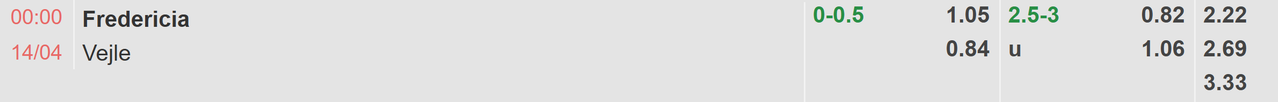 Đã 4 vòng đấu liên tiếp, Vejle không thể ghi bàn thắng thứ 2 trong thời gian chính thức. Tài cũng chỉ xuất hiện 1 lần duy nhất với kết quả thua 1-2 trước Aarhus, trong khi 3 màn trình diễn còn lại 1-1 luôn là tỷ số cuối cùng của trận đấu. Sự yếu ớt của thầy trò Claus Norgaard chính là cơ sở để giới mộ điệu xuống tiền cửa xỉu 2.75 FT vì ngay cả Fredericia gần đây cũng không tỏ ra quá lợi hại trong khâu tấn công. Cụ thể, 2/3 lần ra sân vừa qua của chủ nhà chẳng xuất hiện bất cứ màn nổ súng nào, nên mới dẫn đến tình cảnh bị đẩy xuống cạnh nhóm cầm đèn đỏ.