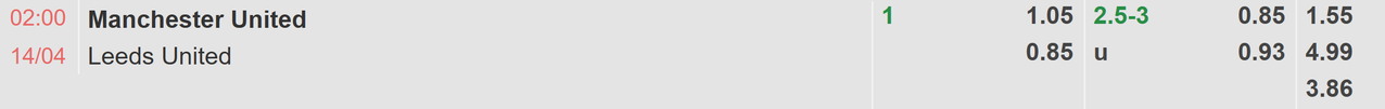 Khoảng cách 9 điểm với vị trí nhì bảng khiến Man United vẫn cần phải nỗ lực rất nhiều để thu hẹp khoảng cách, cuộc gặp gỡ với Leeds United đang ở khu vực cuối bảng xếp hạng sẽ là một cơ hội tốt cho CLB chủ sân Old Trafford mang về chiến thắng trong bối cảnh mùa bóng năm nay chỉ còn 7 vòng nữa sẽ kết thúc.