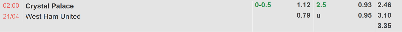 Từ khi West Ham tụt dốc trong nhiều năm trở lại đây, Crystal Palace trở thành thách thức cực kỳ khó vượt qua. Dù chỉ sở hữu sức mạnh và vị thế của một câu lạc bộ tầm trung nhưng Đại Bàng Anh đã hạ gục The Hammers tổng cộng 4/5 lần chạm trán gần nhất. Riêng năm ngoái, thầy trò Nuno Espirito Santo toàn thua trước Đại Bàng Anh dù sở hữu lợi thế sân bãi. Được chấp 0-0.5 FT nhưng cửa thắng kèo châu Á của West Ham cực kỳ thấp. Bởi đội khách mới có 8/32 lần hưởng trọn niềm vui và 5 trận gần đây trên mọi đấu trường của thầy trò Nuno Espirito Santo chỉ thắng 1.