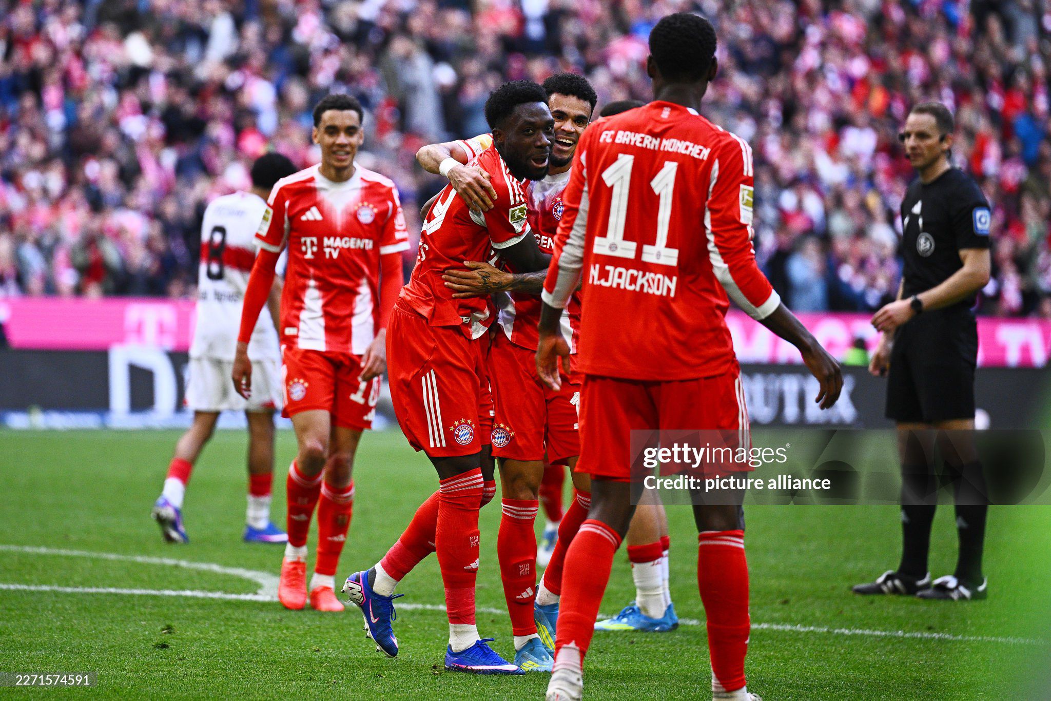 Tuy nhiên, bàn thua lại trở thành cú hích để Bayern bùng nổ. Chỉ trong vòng 6 phút trước giờ nghỉ, đội chủ nhà ghi liền 3 bàn. Jamal Musiala kiến tạo để Raphael Guerreiro gỡ hòa, trước khi Luis Diaz dọn cỗ cho Nicolas Jackson nâng tỷ số lên 2-1. Alphonso Davies sau đó ghi thêm một bàn đẹp mắt, giúp Bayern dẫn 3-1 trước khi bước vào giờ nghỉ.