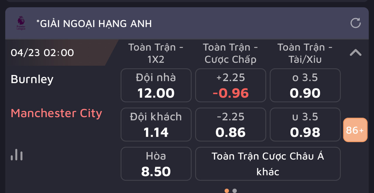 Xét theo kèo châu Á được niêm yết, Manchester City đang cho thấy sự vượt trội rõ rệt khi họ đã thắng kèo trong cả 4 trận gần nhất. Đáng chú ý, ở 2 lần đối đầu trước đây khi chấp mức tương tự khoảng 2 1/4 trái như trận này, Man City đều giành chiến thắng với cách biệt rất lớn, trong đó có những trận thắng ít nhất 5 bàn và thêm một trận thắng với tỷ số 2-0. Ngược lại, Burnley FC lại thể hiện bộ mặt kém tích cực khi để thua kèo châu Á ở 5 trong 6 trận gần nhất, cho thấy sự thiếu ổn định và khó tạo niềm tin.