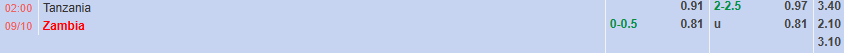 Tỷ lệ kèo Vòng loại World Cup 2026 Tanzania vs Zambia