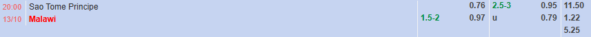 Tỷ lệ kèo Vòng loại World Cup 2026 Sao Tome & Principe vs Malawi