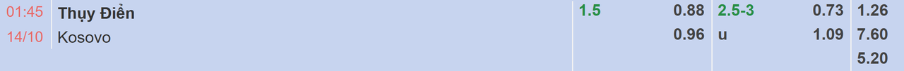 Với 3 trận liên tiếp không thắng, đội bóng của HLV Jon Dahl Tomasson chỉ biến nỗi lo mất trắng tiền cược của giới đầu tư thành sự thật. Tỷ lệ chấp 1.5 FT nghiêng về phía Thuỵ Điển ngầm giúp Kosovo thắng kèo châu Á trong chuyến làm khách sắp tới. Hai đội từng gặp nhau ở vòng loại World Cup 2022 và Thuỵ Điển vào thời kỳ đó luôn bắt nạt Kosovo một cách dễ dàng với tỷ số 6-0 sau 2 lượt trận. Tuy nhiên, phong độ đối lập của cầu thủ đôi bên đã khiến mọi dự đoán đổ dồn vào Kosovo.